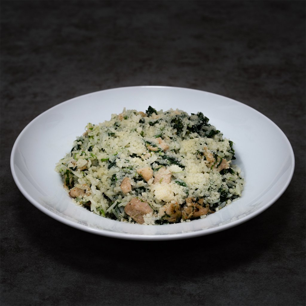 rýže basmati, kuřecí prsa, špenát, parmezán, smetana