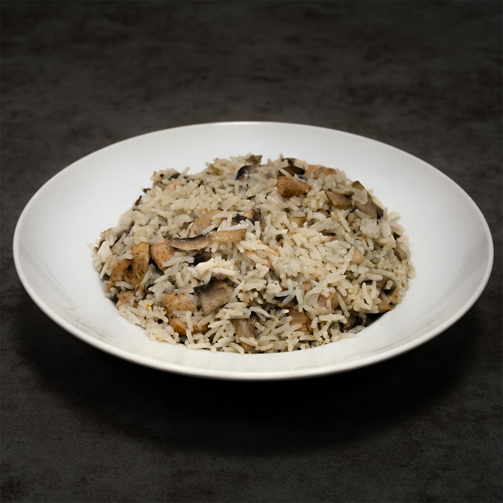 rýže basmati, kuřecí prsa, žampiony, smetana, niva
